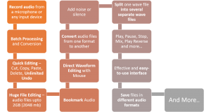 This software has Powerful Editing Tools – Cut, Copy, Split, Trim, Delete, Delete Silence, Paste, Paste Mix and Unlimited Undo