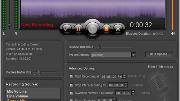 - Record live audio through a microphone or mixer or any other available input device.